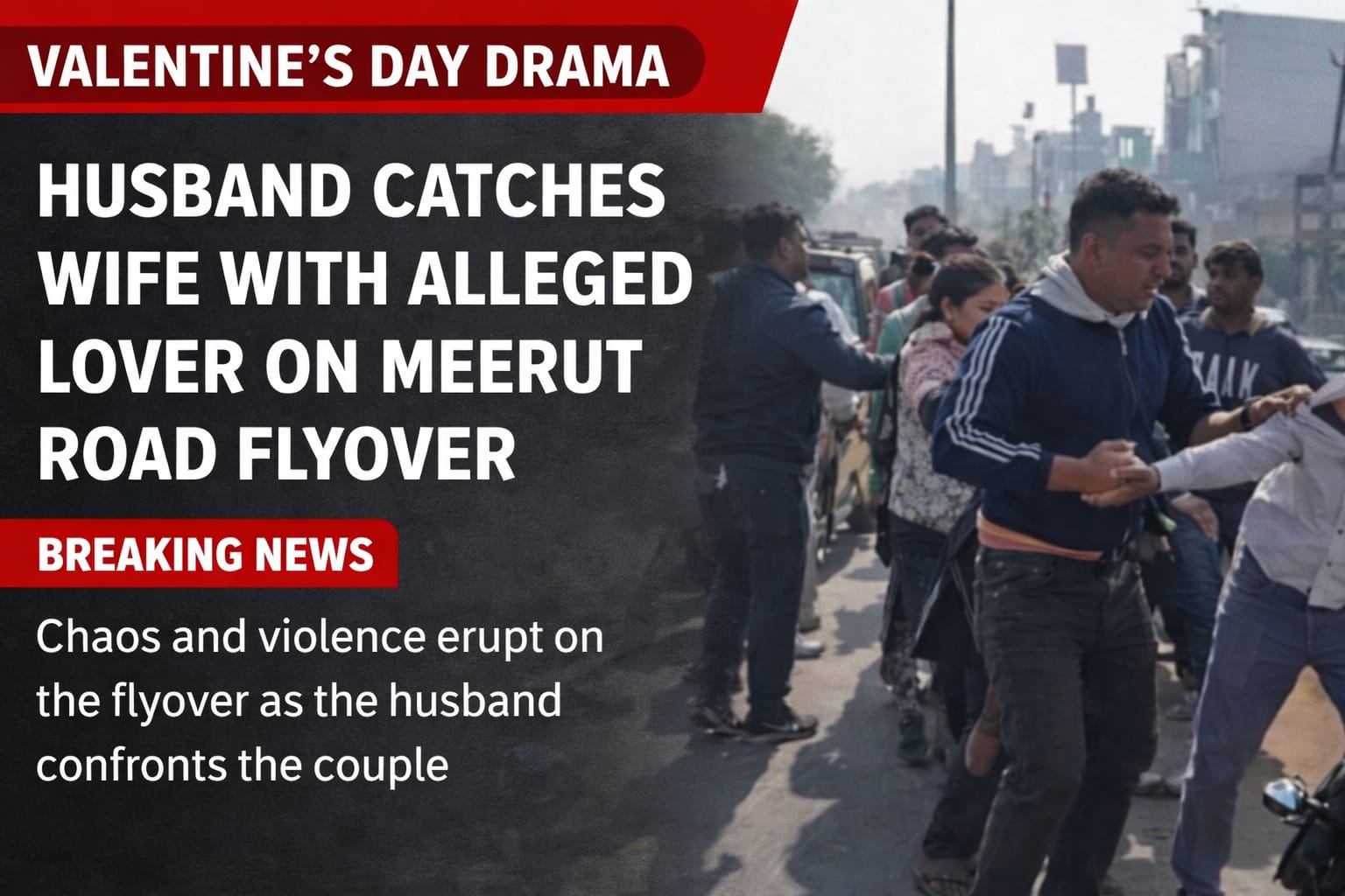 वेलेंटाइन डे पर फ्लाईओवर बना जंग का मैदान•पत्नी को कथित प्रेमी संग देख भड़का पति, बीच सड़क चले लात-घूंसे