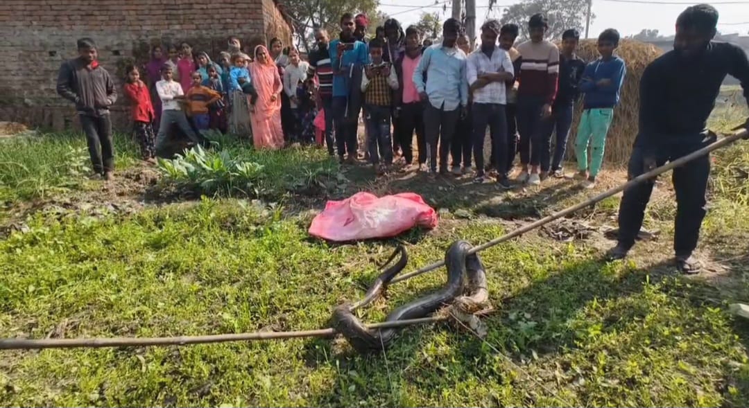 नौतनवा थाना क्षेत्र में विशाल अजगर का सफल रेस्क्यू