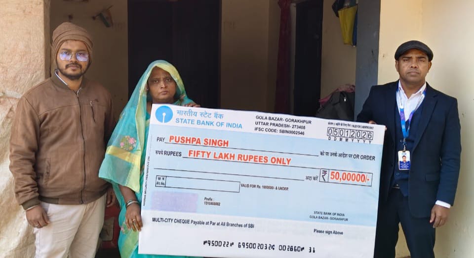 बैंक प्रबंधक ने मृतक शिक्षक के परिवार को सौंपा 50 लाख का चेक