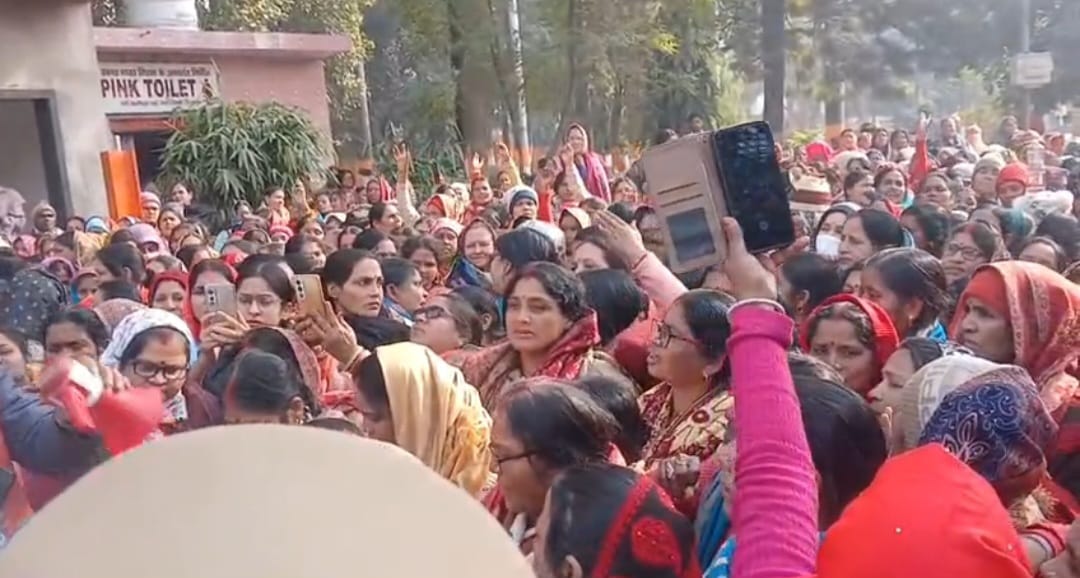 मंडल भर की आशा बहुओं का नगर निगम गेट पर प्रदर्शन, पुलिस से हुई नोकझोंक