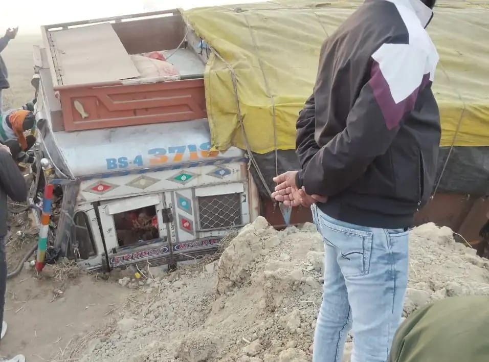 गोला में रामजानकी मार्ग पर अनियंत्रित ट्रक नहर में गिरा, चालक फरार