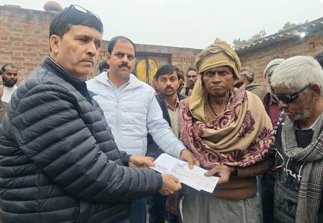मृतक गार्ड के परिजनों को सपा नेता योगेंद्र पाल तोमर ने दी आर्थिक मदद