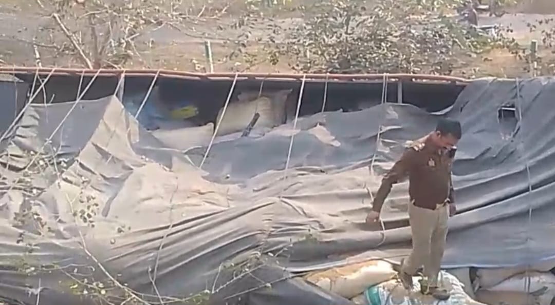 आगरा–लखनऊ एक्सप्रेसवे पर बड़ा हादसा, धान से भरा ट्रक खाई में पलटा
