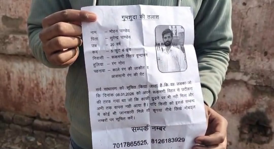 वृंदावन से 20 वर्षीय युवक लापता, परिजनों ने पुलिस से लगाई तलाश की गुहार