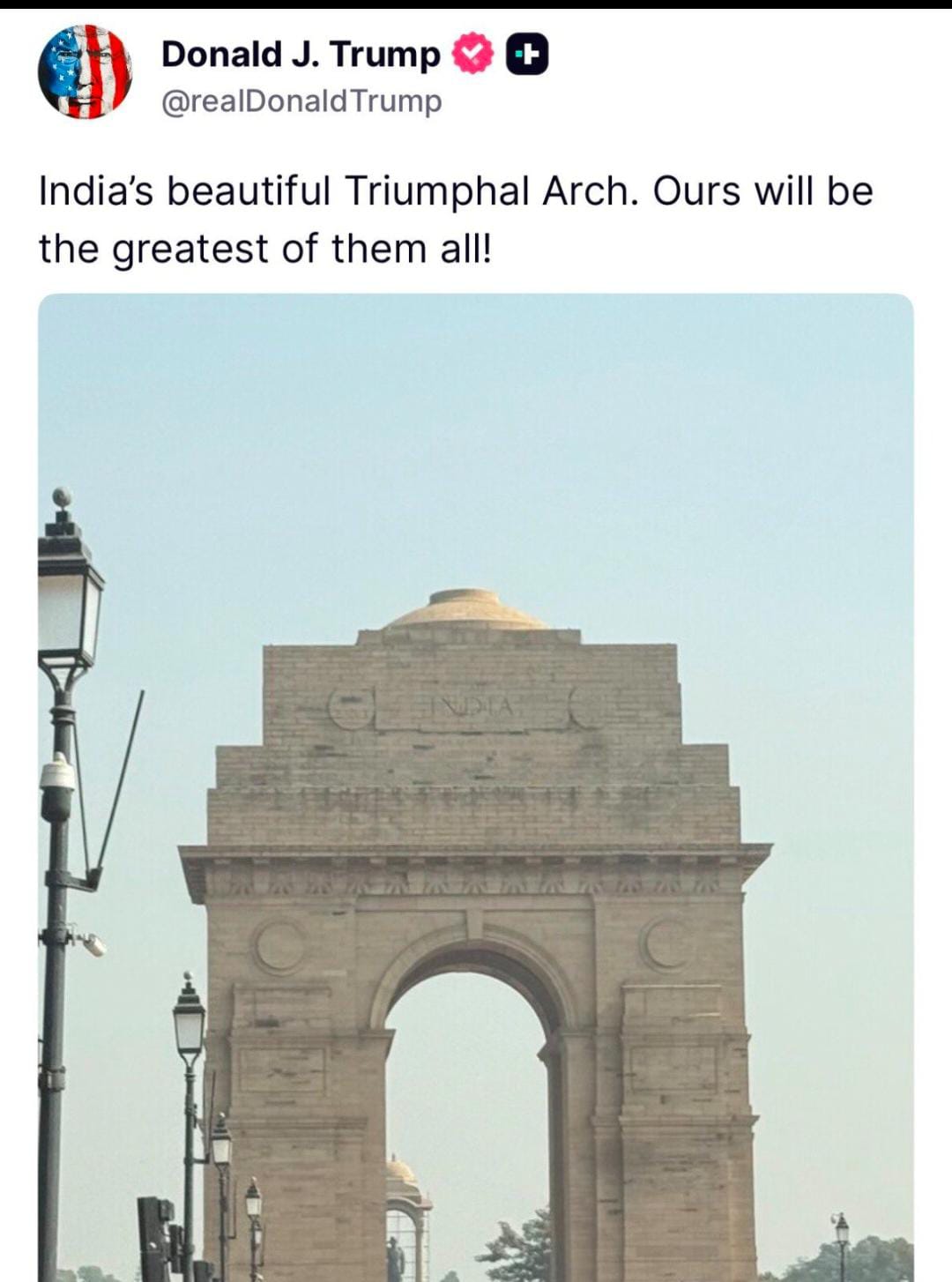 ट्रंप ने शेयर की इंडिया गेट की तस्वीर, भारत के विजय स्मारक की खुलकर की तारीफ