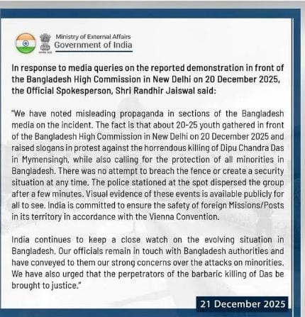 हिंदू युवक की लिंचिंग पर भारत सख्त, बांग्लादेश से दोषियों पर कार्रवाई की मांग