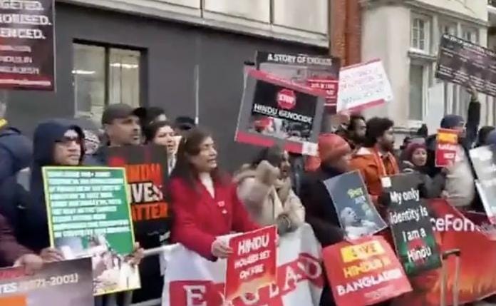 बांग्लादेश में हिंदुओं पर हिंसा के खिलाफ लंदन में प्रदर्शन