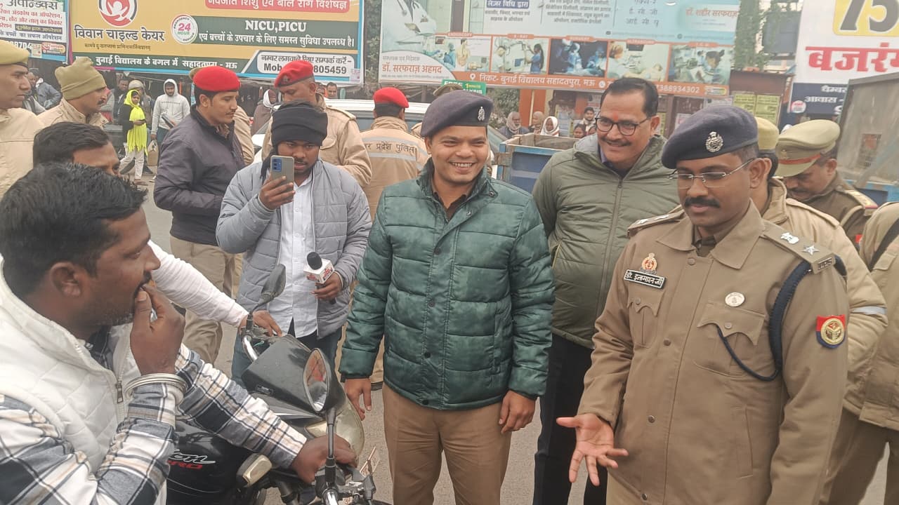 मऊ में यातायात जन जागरूकता अभियान, एसपी ने नियमों का पालन करने का दिया संदेश