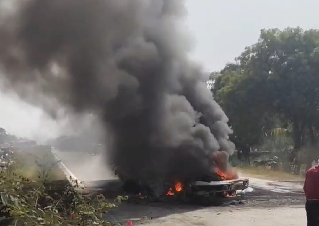 दोहरीघाट में दो ट्रेलरों की भिड़ंत, आग लगने से चालक की जिंदा जलकर मौत