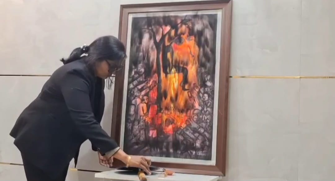बांग्लादेश में अल्पसंख्यक पीड़ित दीपू की भयावह घटना पर डॉ. लक्ष्मी ने बनाई पेंटिंग