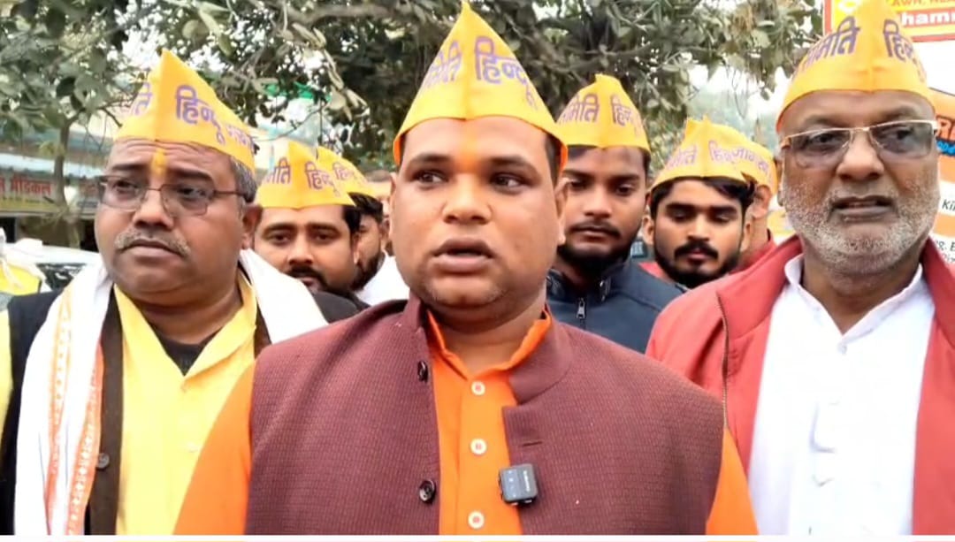 मऊ में हिंदू जागरण समिति ने बांग्लादेश के प्रधानमंत्री कापुतला फूंका, हिंदुओं पर अत्याचार के खिलाफ प्रदर्शन