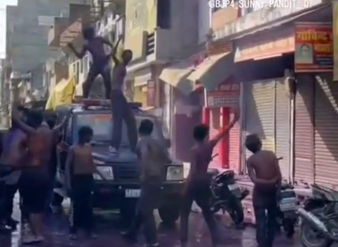 पुलिसकर्मियों का डांस वीडियो वायरल, सरकारी गाड़ी पर चढ़कर मचाया धमाल