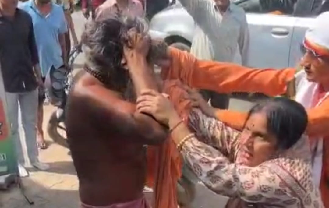 15 साल बाद साधु के वेश में मिला पति, पत्नी ने बीच सड़क पर की पिटाई; वीडियो वायरल