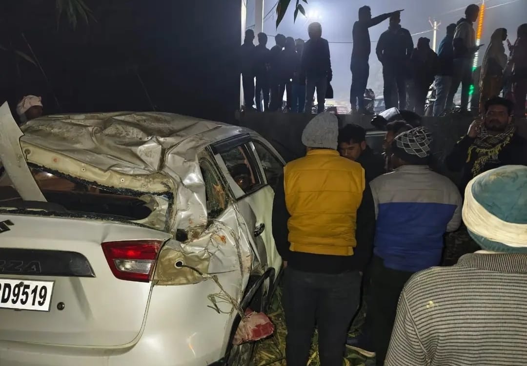 मुहम्मदाबाद गोहना में भीषण सड़क हादसा, अनियंत्रित ब्रेजा कार खाई में पलटी, तीन घायल