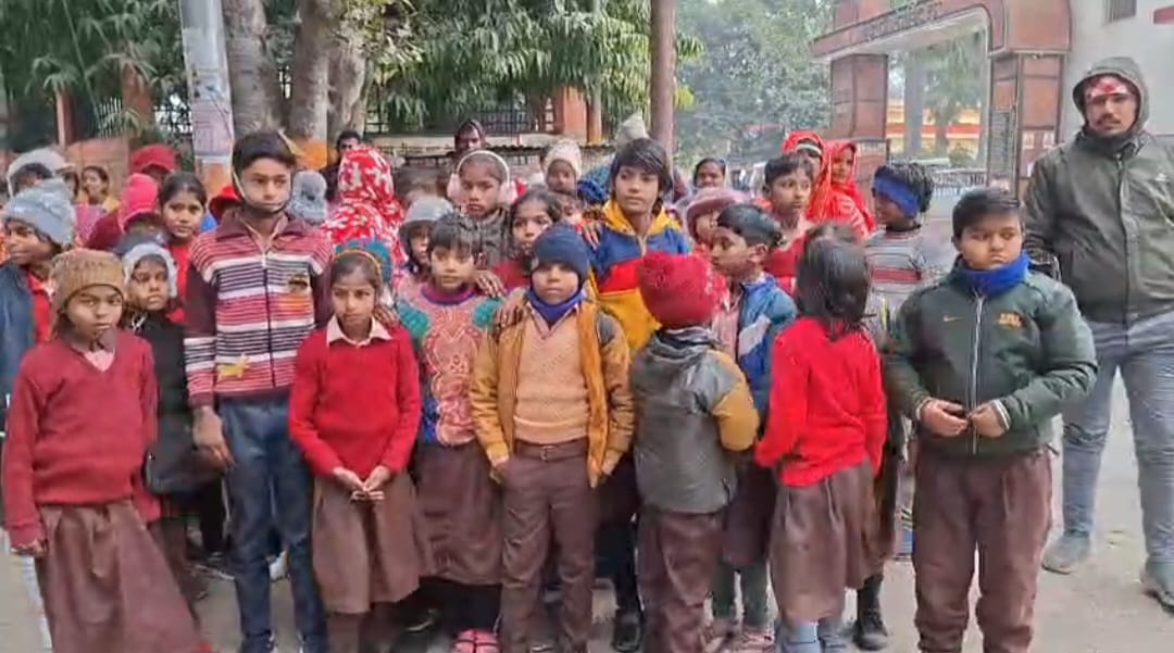 मैनपुरी – शिक्षक का तबादला रुकवाने डीएम कार्यालय पहुंचे मासूम बच्चे