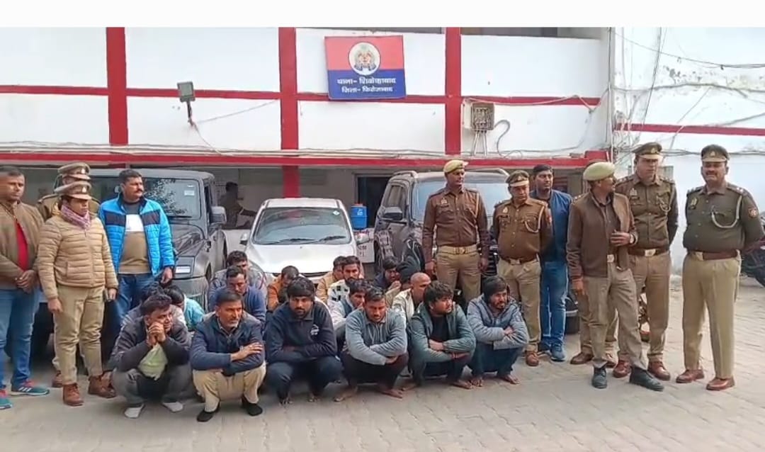 फिरोजाबाद: खेतों में चल रहे बड़े जुए का भंडाफोड़, 20 जुआरी गिरफ्तार, लाखों की नकदी व लग्जरी वाहन बरामद