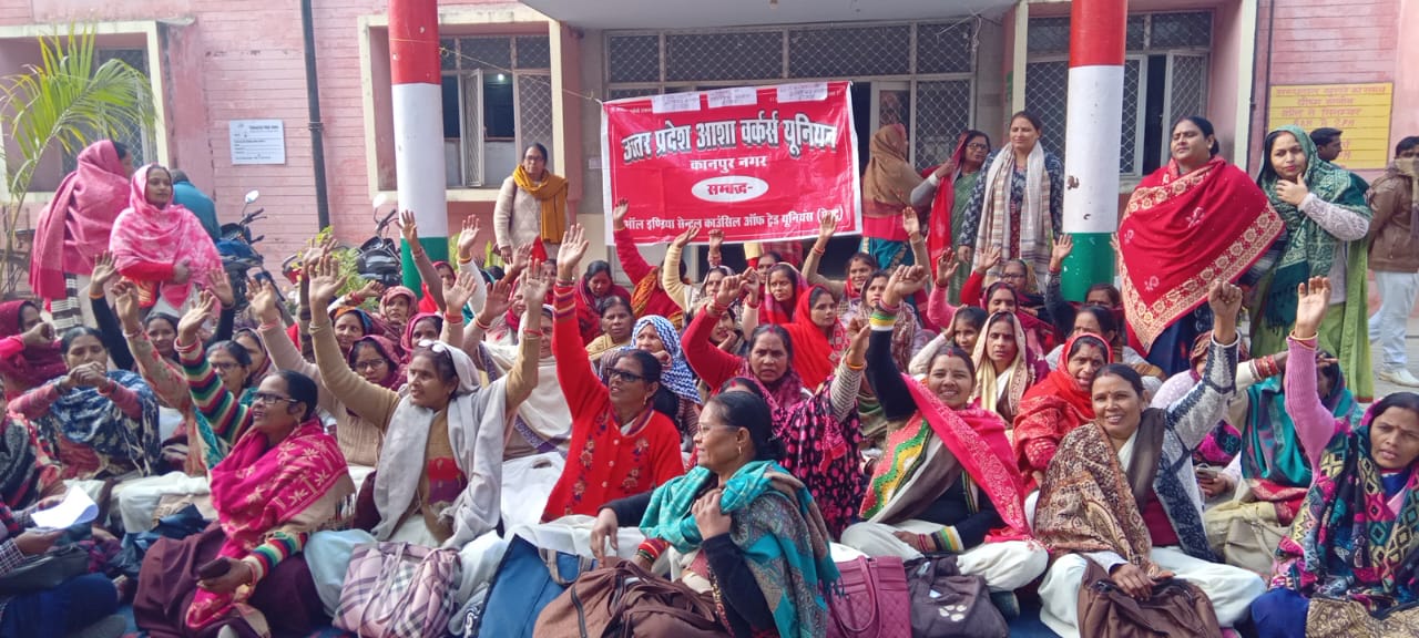 सीएचसी घाटमपुर में आशाओं का धरना, मानदेय भुगतान की मांग