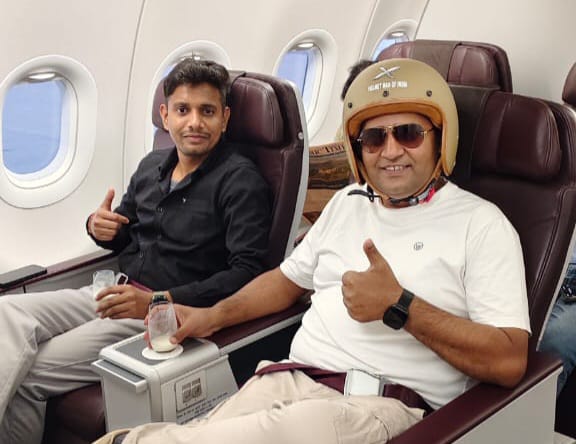 फ्लाइट में हेलमेट पहनकर बैठे व्यक्ति को देखकर सभी चौंक गए