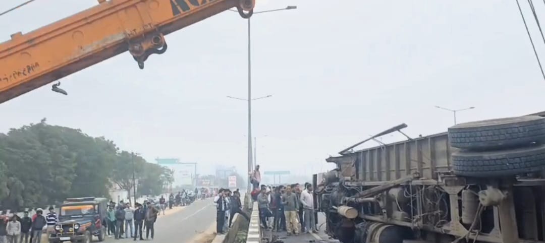 टेलर पलटने से चालक-क्लीनर गंभीर, 3 घंटे बाद रेस्क्यू कर बचाई गई जान