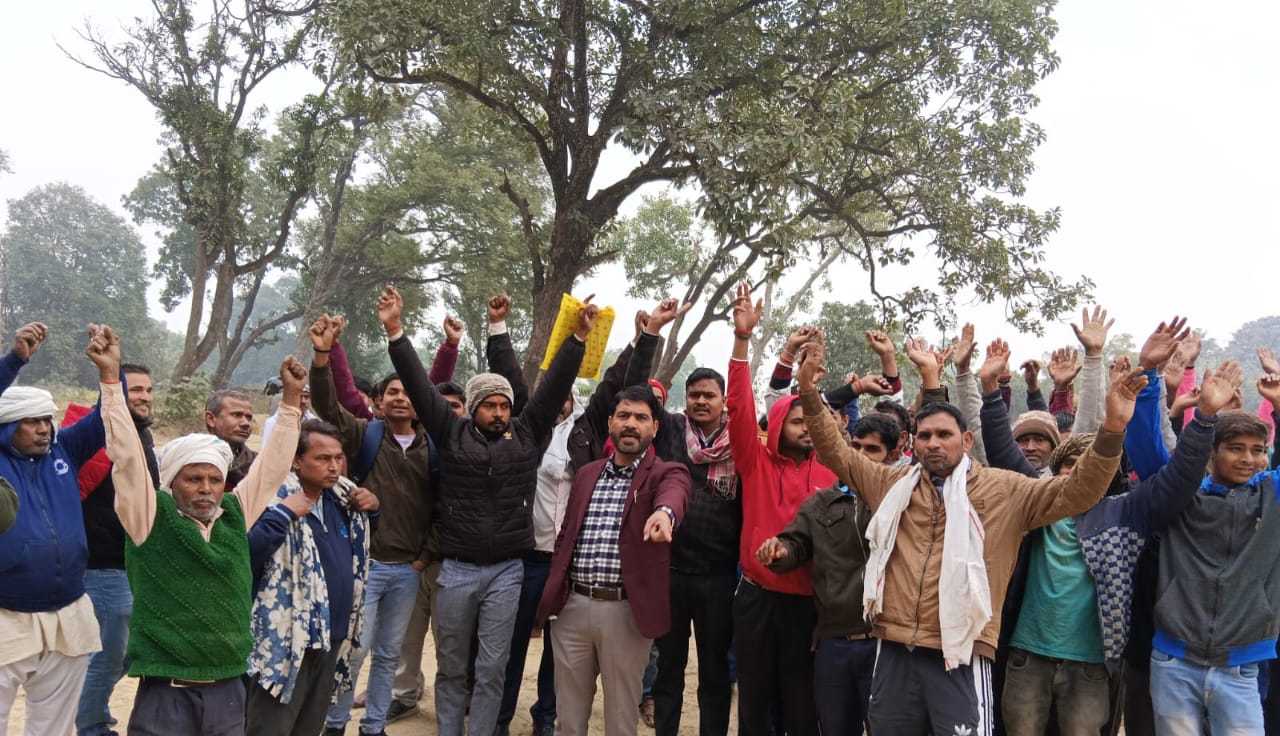 मंदिर की जमीन और पोखरा पर कब्जे के आरोप, ग्रामीणों का विरोध प्रदर्शन