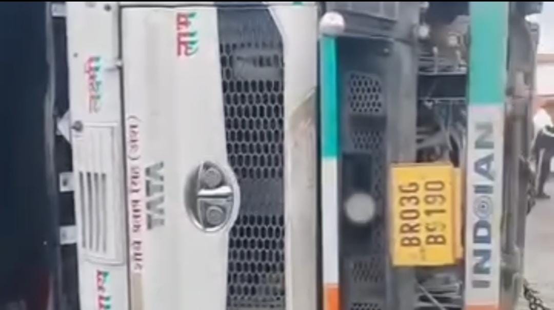 बलिया में बड़ा हादसा टला, गिट्टी लदा टेलर पलटा