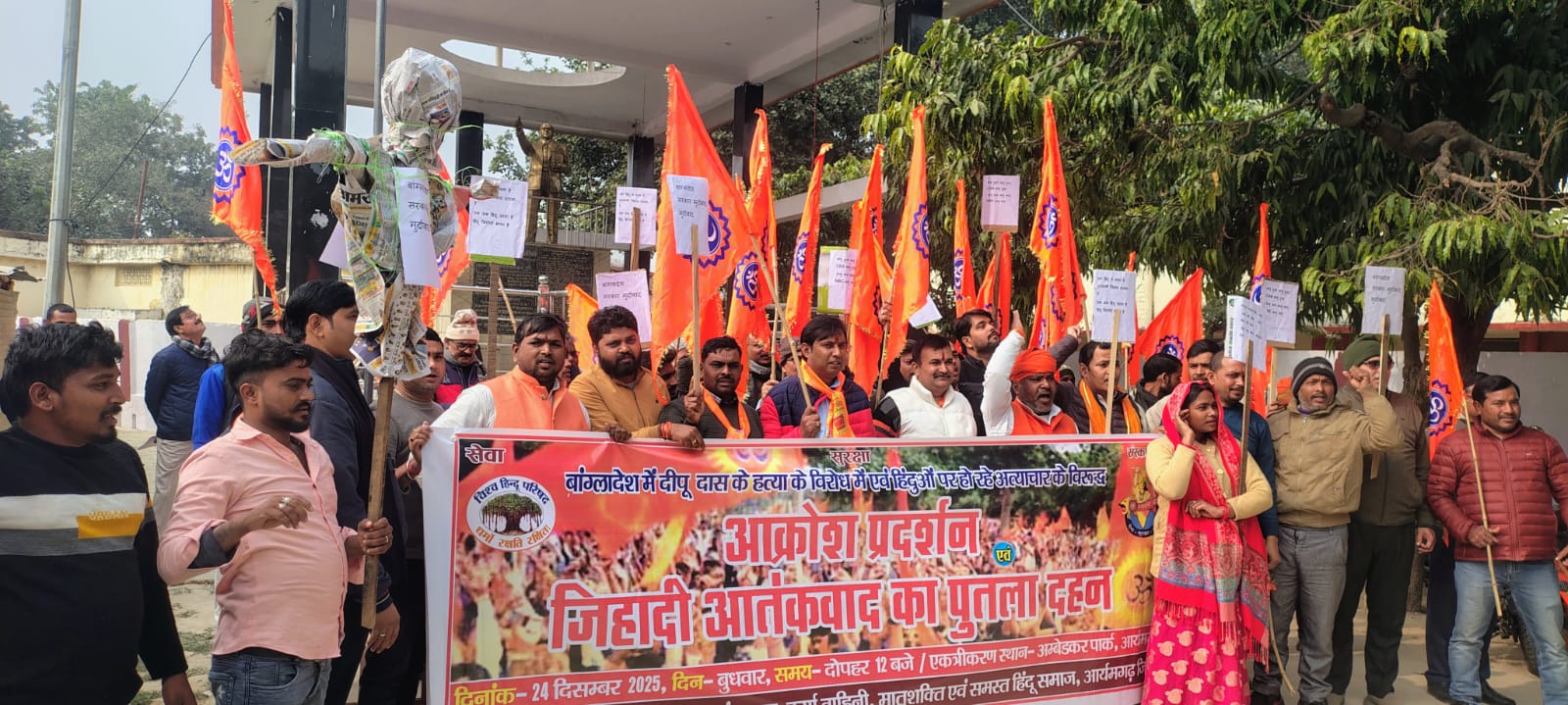 हिंदू संगठनों ने बांग्लादेश का पुतला फूंका, दीपू दास हत्या के विरोध में प्रदर्शन