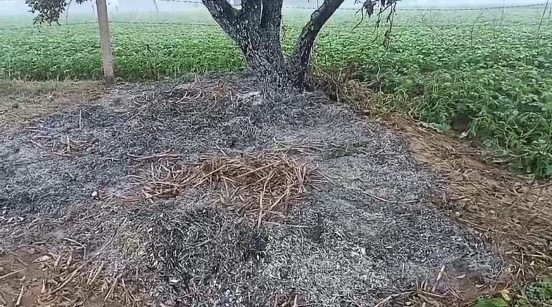 *खेत में रखी करब में आग, सैकड़ों बेल फल जलकर राख, किसान को भारी नुकसान