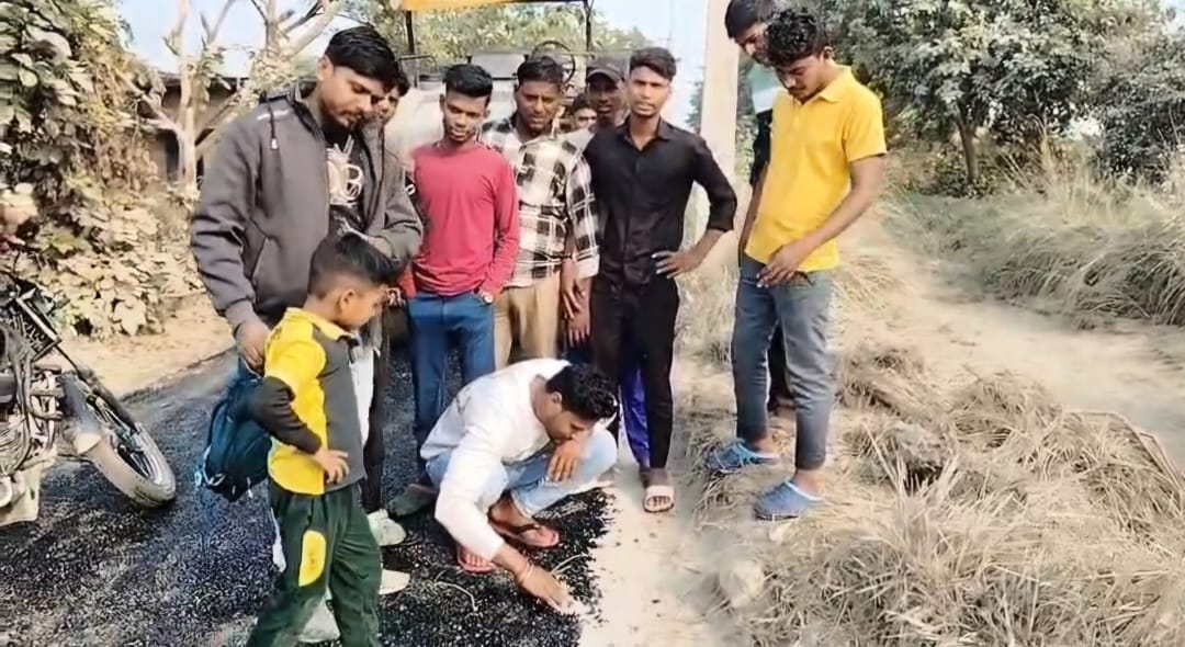बेल्थरारोड में 46 लाख की सड़क उखड़ने पर हंगामा, विधायक पहुंचे तो JE मौके से भागा