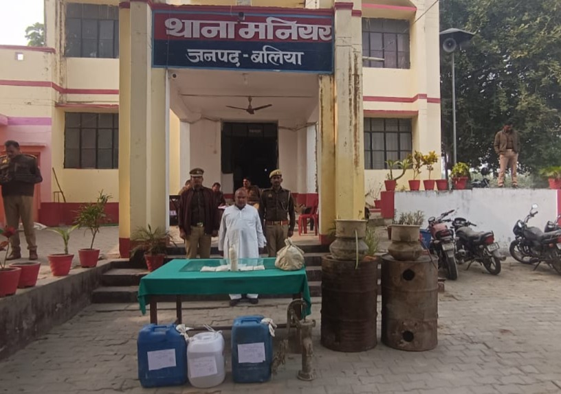 बलिया में 100 लीटर अवैध अपमिश्रित शराब बरामद, एक तस्कर गिरफ्तार