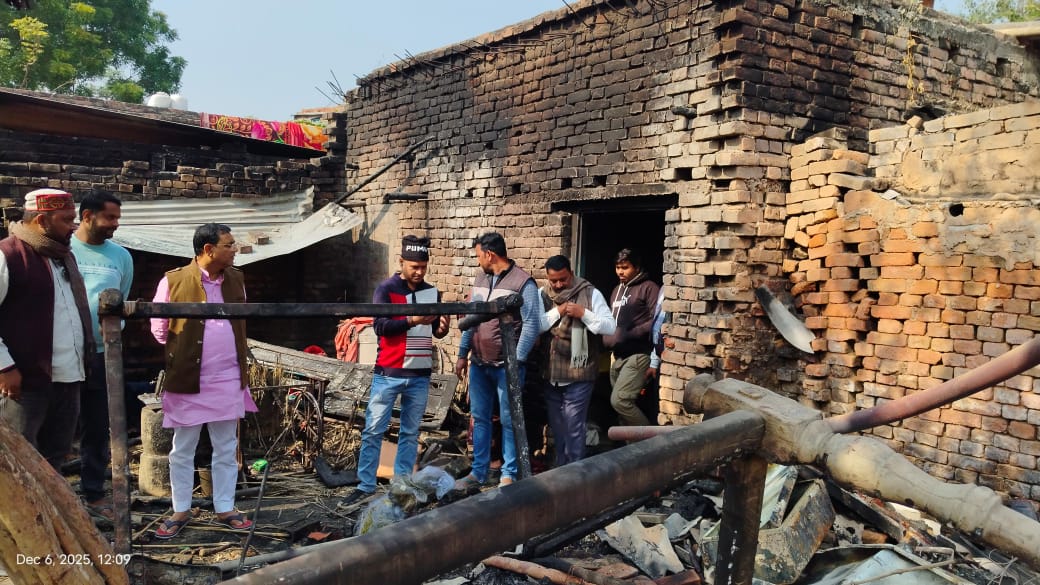 बलिया में आग से नौ परिवारों का आशियाना खाक, समाजसेवी ने की त्वरित मदद
